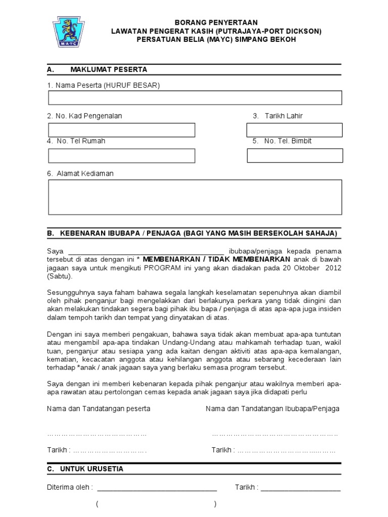 Borang penyertaan pertandingan kategori. Maklumat yang dinyatakan di dalam borang ini adalah benar Pihak Penganjur Pertandingan. Looking to start a youth league sports camp or fitness class Jotform has the sports forms for you.