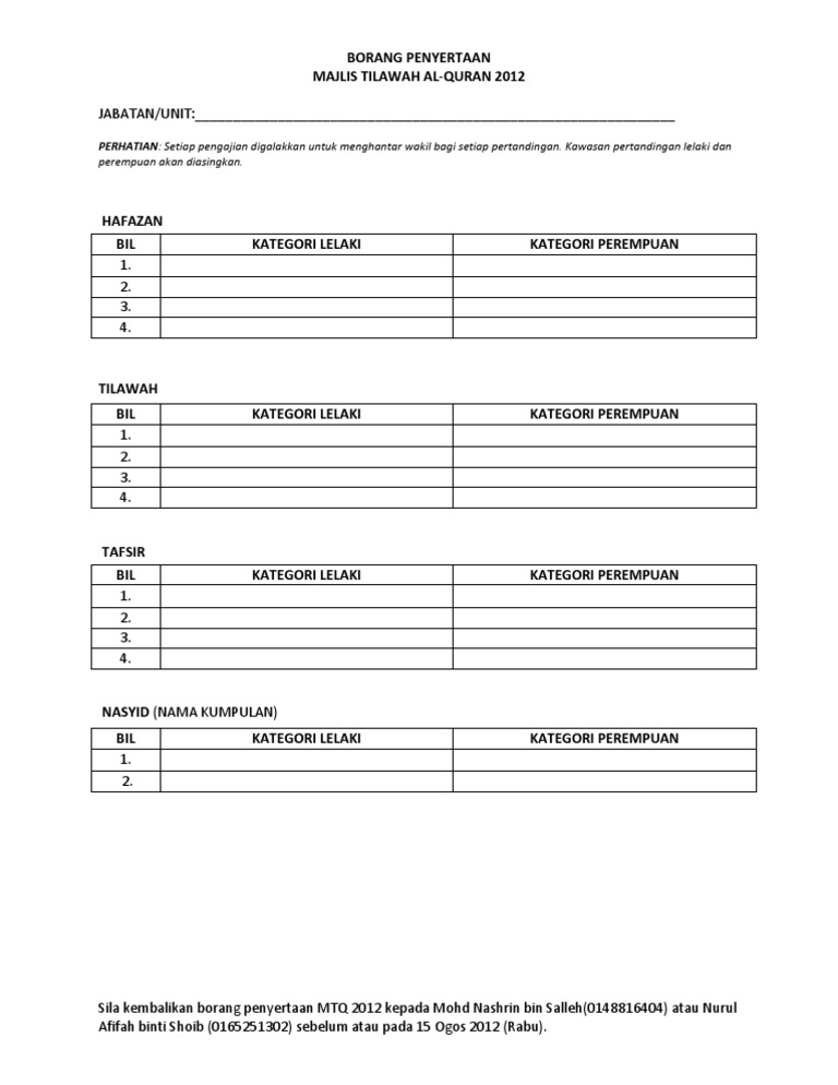 Contoh Borang Penyertaan Mtq 2012 Pdf