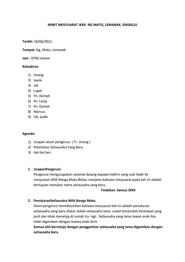 Minit Mesyuarat Jkkk Kampung Bukit Punggur Pdf
